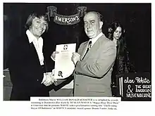 In 1975, while performing at Emerson's Restaurant in downtown Baltimore, he was presented with a proclamation by then-Mayor William Donald Schaefer naming White The Evening Mayor of Baltimore, in appreciation of his contributions to bringing nighttime business back into Baltimore's downtown.