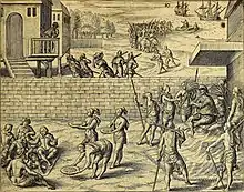 The sultan's friendship with the Portuguese cooled when they asked for permission to build a fort at the estuary of the Aceh River. This was refused.[6] In the next year 1601, an acute dispute arose. One of the Portuguese ships chased an Arab craft and was therefore in turn attacked and taken by Acehnese vessels. This incident may explain the good reception accorded to a new Dutch fleet that reached Aceh in August 1601. Being enemies of the Portuguese they were probably seen as a useful counterweight. Sultan Alauddin gave permit to the strangers to establish a trading post. Two envoys were dispatched for the Netherlands. One of them died in Middelburg but the other negotiated with Prince Maurits of Nassau. He was eventually brought back to Aceh with a Dutch craft in December 1604. At that time Sultan Alauddin was no longer on the throne. English and French ships visited Aceh in 1602. The naval prowess of the new Europeans was demonstrated when a large Portuguese galleon was captured by a Dutch-English fleet. They joyful sultan reportedly showed his gratitude by singing a psalm of David.[7]
