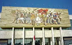 "The Albanians". Communist era mural mosaic depicting purported ancient to modern figures from Albania's history at the entrance of the National History Museum, Tirana[182][183]