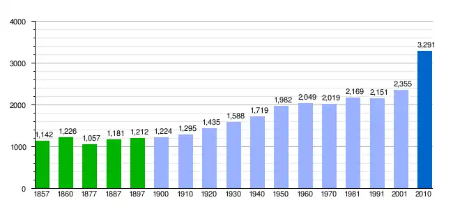 Vertical bar chart demographic of Albelda de Iregua between 1857 and 2010