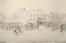 Albert Berghaus (fl. 1869โ1880) was an important American illustrator from the period immediately prior to the Civil War up to about the 1880s/1890s. He worked for Frank Leslie's Weekly, also known as Frank Leslie's Illustrated Newspaper, producing sketches and wood engravings of important events in contemporary American history. After the Civil War, he traveled in the west, and in the late 1870s he collaborated with Frederic Remington to illustrate "Tenting on the Plains," an account, possibly a magazine article, by Mrs. George Custer.