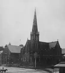 On 15 April 1901, the Deputy Premier of Queensland, Arthur Rutledge, laid the foundation stone for the "new" Albert Hall. Reverend Charles Edward James placed a time capsule (a bottle containing coins, lists of church officials and recent newspapers) in a cavity before the stone was laid.[2] On Saturday 28 September 1901, the Queensland Lieutenant-Governor, Samuel Griffith, officially opened the new hall.[3][4]