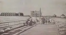 Albert Park has a long beach frontage, with several distinctive features, including many grand buildings (such as the Victoria Hotel, a grand hotel and former coffee palace, now café bar, built in 1887) and Victorian terrace homes; Kerferd Kiosk, an iconic Edwardian bathing pavilion and Kerferd Pier, which terminates Kerferd Road and is a jetty onto Port Phillip, used for fishing by many and sharks have occasionally been found around it.