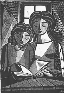 "Lectoras" (Readers), xylography by Alberto Nicasio, 1954