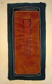 His marriage in 1989 reinvigorated his interest in depicting religion and its influence on marriage.[1]:18 The work uses symbols to express the sometimes at-odds concepts of marriage, religion, memory, spirituality, and eroticism. Specifically, overlapping forms stood in for themes of marriage and memory, black lace invoked religion and eroticism, and binary forms recalled marriage, while gold linked to both marriage and religion.[1]:18–19[30]:56–57