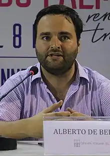 Alberto de Belaúnde de Cárdenas (born 20 March 1986) is a Peruvian lawyer, LGBT activist, and politician. An independent progressive caucusing with the Purple Party, he currently serves in the Peruvian Congress' complementary term 2020–2021. He previously served in the 2016–2019 term, elected under Peruvians for Change, and subsequently joining the progressive Liberal Bench.[1]