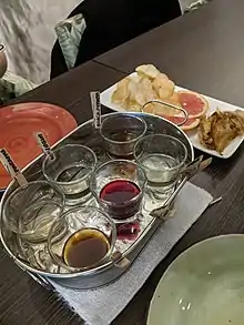 Tuak (Dayak), also known as lihing (Kadazan-Dusun) or tapai (Malay), is a rice wine made from fermented rice and yeast, with an alcohol content between 5% and 20%.[10] It is common in Borneo and particularly important for the Dayak people.[10]