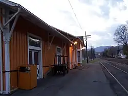 Alderson Historic District is a national historic district located at Alderson, Greenbrier County and Monroe County, West Virginia. The district encompasses 196 contributing buildings and three contributing sites located in the commercial district and surrounding residential section. They are predominantly 19th and early 20th century frame detached residences and masonry commercial buildings including notable examples of the Federal, Greek Revival, and Queen Anne styles. Notable buildings include the Woodson Mohler Grocery building, Johnson and Gwinn warehouse, Greenbrier Mill, First National Bank building, Alderson's Store, Chesapeake and Ohio depot, U.S. Post Office, and the City Hall (1939). The Alderson Ferry Site is for the ferry established 1789. Located in the district is the separately listed Alderson Bridge.[2]