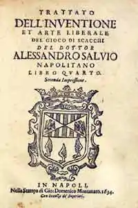 Alessandro Salvio (c. 1575 – c. 1640)[1] was a leading Italian chess player in the early 17th century. He started a chess academy in Naples, and wrote a book called Trattato dell'Inventione et Arte Liberale del Gioco Degli Scacchi, which was published in Naples in 1604. He also wrote Il Puttino published in 1634. According to JH Saratt's translation, Il Puttino was first published in 1604, and republished in 1634.