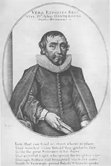 Alexander Henderson (c. 1583 – 19 August 1646) was a Scottish theologian, and an important ecclesiastical statesman of his period. He is considered the second founder of the Reformed Church in Scotland. He was one of the most eminent ministers of the Church of Scotland in the most important period of her history, namely, previous to the middle of the seventeenth century.[2]