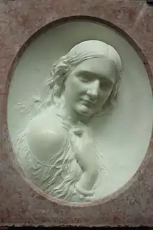 Munro's sculptures were noted for their formal simplicity. His most famous work was Paolo and Francesca, which was exhibited at the 1851 exhibition.[4] It depicted the lovers as languid, dreamy and genteel, contributing to the popular image of the Pre-Raphaelite movement. The final marble version is in Birmingham Museum and Art Gallery. The original plaster version of the sculpture is currently on display in Wallington Hall, which also contains a portrait relief bust of Pauline, Lady Trevelyan created by Munro.