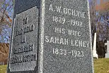 Ogilvie died in 1902 and his remains were interred at Mount Royal Cemetery.[1]