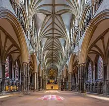 Alexander the Mason, sometimes called Alexander the Mason III, was a master mason who designed the nave and crossing of Lincoln Cathedral in the mid 13th century. Following Geoffrey de Noiers as designer, Alexander designed the star-patterned vaulting of the nave, adding tierceron ribs to decorate the vaulting, which had heretofore been relatively plain. The crossing vault, dating to 1238, was extensively elaborated, using eight spring points in the tower. Alexander designed the cathedral's screen front, chapter house and Galilee porch. The chapter house at Worcester Cathedral is also attributed to Alexander, and he may have worked in France at Le Mans Cathedral. Other churches in England attributed to Alexander are St Wulfram's Church, Grantham and St. Mary Magdalene, Newark-on-Trent.[1][2]