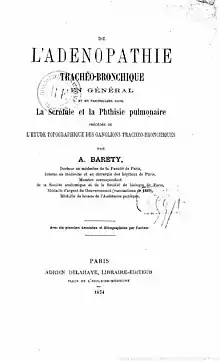 De l'adénopathie trachéo-bronchique en général et en particulier dans le scrofule et la phthisie pulmonaire précédée de l’étude topographique des ganglions trachéo-bronchiques by Alexandre Baréty, 1874.