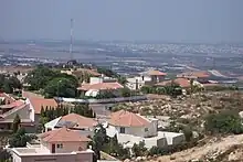 Alfei Menashe (Hebrew: אַלְפֵי מְנַשֶׁה, Arabic: ألفي منشيه, , lit. Thousands of Manasseh) is an Israeli settlement on the western edge of the central West Bank. Built over land confiscated from the nearby Palestinian villages of Nabi Ilyas,[2] Islah,[3] and Ras Atiya,[4] it is located in the so-called seam zone of the West Bank.[5] Its name is taken from the bible (Deuteronomy 33:17). It was granted local council status in 1987. In 2021 its population was 7,966.