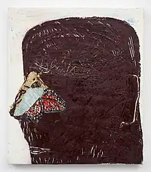 Describing these works, Robert Lue writes: "Often rough like the early banners, the Lectio works differed in that they appeared to be made from the remnants of some glorious icon.... Borysewicz literally strives to recreate meaning by bringing together splinters of sacred imagery with the basic wood and metal of our physical domain. Both tragic and gracefully matter-of-fact, they represent an honest coming to terms with the bankruptcy of the transcendent referent."[10] This theme of retrieval is consistent with Borysewicz's paintings and works on paper that often feature collaged pieces of pages from icon books.