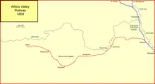 Alford was a small market town and regional centre in the valley of the River Don, Aberdeenshire. As the railway network developed in the north of Scotland, there were a number of proposals to connect the town. On 26 June 1846 the Great North of Scotland Railway was authorised to build a line from Aberdeen to Inverness.[1] A week later, on 3 July 1846 an Act authorised the Alford Valley Railway to build a line from Kintore on the unbuilt GNoSR line to Alford along the Alford Valley.[note 1][2][3][4][5] The authorised share capital was £100,000. However in the aftermath of the Railway Mania there was widespread financial panic and it proved impossible to generate subscriptions, and the company was unable to proceed. In fact in December 1850 the Company was wound up due to inability to raise money. Only £4,344 of its £100,000 capital had been subscribed, and investors got back only £2 16s of their £5 deposit on each £50 share.[6][7]