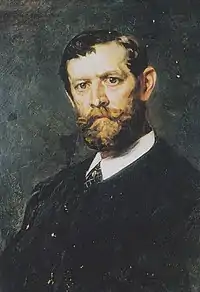 In 1867 he went abroad again visiting a number of countries - Bohemia, Switzerland, Germany. He spent a longer time in Paris, where he studied under Leon Bonnat and Antoni Oleszczyński.[2] On 16 April 1871 he went to Bayeurx, then to Munich, where he enrolled at the Academy of Fine Arts, Munich, continuing his studies with Anton Seitz and Arthur von Ramberg.[2] He also made a study trip to Italy with fellow student Albert von Keller, painting portraits of local aristocrats and copying Veronese.[3] This was followed by a series of exhibitions in Munich, Paris and Kraków.