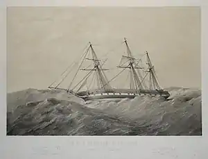 Promoted to captain on 2 May 1848, Ryder became commanding officer of the frigate HMS Dauntless in the Channel Squadron, in December 1853.[3] In HMS Dauntless he saw action in the Black Sea and then took part in the Battle of Kinburn in October 1855 during the Crimean War.[3] During the War Admiral Sir Charles Napier threatened to court-martial him for letting an enemy ship escape but the Admiralty refused to support this course of action.[1] After the war Ryder sought leave and travelled to Malta to meet his wife, who was dying of tuberculosis only to find that she had died before his arrival, leaving a two-year-old child.[4] He was awarded the Turkish Order of the Medjidie, fourth class on 3 April 1858.[5] At this time he also wrote a paper on methods of ascertaining the distance between ships at sea.[1]