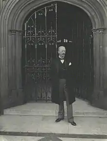 Alfred Cholmeley Earle Welby was born on 22 August 1849 in Denton, Lincolnshire, the youngest son of Sir Glynne Welby, 3rd Baronet. He received his education at Eton College,[1] and then entered the British Army in 1867, purchasing a commission in the 85th Regiment of Foot as an ensign.[2] He shortly after transferred to the 56th Foot,[3] and in 1870 purchased a promotion to lieutenant.[4] The following year he transferred to the 90th Foot.[5] He was promoted to captain in 1876,[6] and transferred to the Royal Scots Greys later that year.[7] He was raised to the rank of lieutenant colonel in 1892.[8] In May 1896, he attended the coronation of Nicholas II of Russia, and two months later he retired from the army.[1]