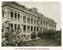 Around the 1900s the number of secondary school students was increasing dramatically.[6] In 1903, while Claudio Williman served as rector of the University of the Republic, the institution was awarded a property in the Cordón barrio, where the headquarters of the Faculty of Secondary Education (current IAVA) and the Faculty of Law (which would also serve as the university's headquarters) would later be built.[7]