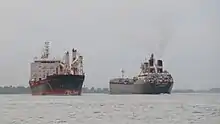A self-discharging bulk carrier, Algoma Compass initially measured 15,674 gross register tons (GRT) and 28,631 tons deadweight (DWT).[1] The ship was later remeasured, though the sources disagree on the totals, at 18,639 gross tonnage (GT)[2] or 29,200 GT at midsummer draught.[3] The deadweight tonnage increased to 29,127.[4] The ship is 207.3 m (680 ft 1 in) long overall and 202.6 m (664 ft 8 in) between perpendiculars with a beam of 23.8 m (78 ft 1 in).[1] The vessel has a midsummer draught of 8.706 m (28 ft 6+3⁄4 in).[3]