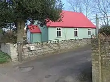 Alhampton's iron church was erected in 1892 as a chapel of ease to the parish church of St Mary Magdalene at Ditcheat.[3] A chapel of ease for Alhampton had been suggested as early as 1887.[4] The rector of Ditcheat, Rev. C. E. Leir, determined to supply a chapel for Alhampton, in particular to serve those who struggled or were unable to get to the parish church, such as the elderly and sick.[5]