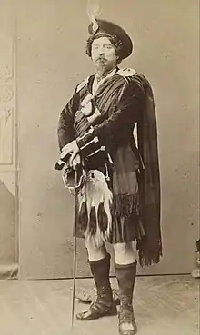 Marriott played Hamlet "thousands of times." On the first occasion, her "leading man disappointed her", she stepped in successfully: an encouraging start.[36] She was not the only woman to play Hamlet. Other Women in Black who played the part in the 19th century were Winetta Montague, Clare Howard, Louise Pomeroy, Charlotte Compton, Millicent Bandmann-Palmer, Julia Seaman and Oliph Webb, to name a few.[37][38] She is first recorded as playing Hamlet in an 1859 tour of Glasgow, Bath, Birmingham, Dublin and Liverpool, three years after marrying Robert Edgar, and one year after giving birth to Grace Marriott, of whom Edgar was not the father. Following this, she played the same Prince of Denmark at the Theatre Royal, Marylebone, in 1861.[1][27]