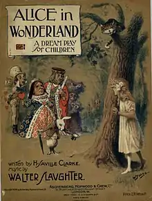 Alice in Wonderland is a musical by Henry Savile Clarke[1] (book and lyrics) and Walter Slaughter (music), based on Lewis Carroll's books Alice's Adventures in Wonderland (1865) and Through the Looking-Glass (1871).[2] It debuted at the Prince of Wales's Theatre in the West End on 23 December 1886. Aubrey Hopwood (lyrics) and Walter Slaughter (music) wrote additional songs which were first used for the 1900 revival.