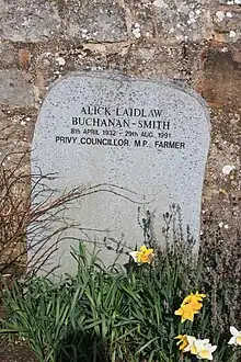 He is buried under a very modest memorial in the north-east corner of Currie Cemetery, next to his parents and eldest brother, Rev George Adam Buchanan-Smith (1929-1983).