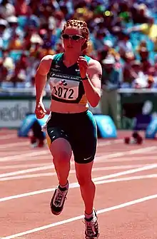 Quinn won two gold medals at the 1992 Barcelona Games in the Women's 100 m C7–8 and Women's 200 m C7–8 events, for which she received a Medal of the Order of Australia.[1][4] At the 1996 Atlanta Games, she won a bronze medal in the Women's 100 m T36–37 event.[4] She won a gold medal with a world record time at the 2000 Sydney Games in the women's 100 m T38 event and a silver medal in the women's 200 m T38 event.[5]