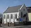 Many other religious groups are represented in the borough. Quakers and Unitarians meet in buildings a short distance apart on South Terrace: the Quaker meeting house dates from 1864, while the Unitarian church was built three years later and opened in 1868.[39] The Salvation Army have met nearby since the 1880s; their citadel was enlarged in 1937, two years after a second was opened in a converted cinema in Ore.[57][58] Places of worship for Spiritualists and Seventh-day Adventists were registered in 1944[59] and 1968 respectively.[60] For Jehovah's Witnesses, Kingdom Halls were registered in St Leonards-on-Sea in 1976[61] (no longer in use), Hollington in 1988[62] and Ore in 2007.[63] An Elim Pentecostal church was registered in 1981, the His Place Community Church—an independent Pentecostal group founded in 1984—now use the former United Reformed church in Robertson Street,[38] and the Bethel Full Gospel Church (Assemblies of God Pentecostal) has occupied a building in Halton since 2003.[64] Latter-day Saints and Christian Scientists registered buildings in Hollington and Silverhill respectively in 1970;[65][66] the former was replaced by a permanent meetinghouse in 1990,[67] while the First Church of Christ, Scientist, Hastings and St Leonards-on-Sea was dissolved in 1996 and the building is in alternative use.[66] Evangelical and non-denominational churches include The Tabernacle (1854),[39] The Independent Church (formerly Kenilworth Evangelical Mission; registered 1977)[68] The King's Church (registered 1995)[69] and Sonrise Church, which occupies a former Anglican church building;[70] another redundant Anglican church was converted into St Mary Magdalene's Greek Orthodox Church in the early 1980s.[27] Muslims converted a building in St Leonards-on-Sea into a mosque and community centre in the 1980s.[71]