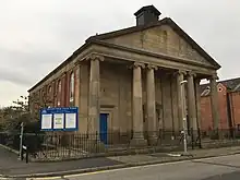 All Saints Church is located in Elizabeth Street, Preston, Lancashire, England. It is an evangelical Anglican parish church in the deanery of Preston, the archdeaconry of Lancaster, and the diocese of Blackburn.[1] The church was built in 1846-1848 for the sum of £2000. It was built in the Classical style with six Ionic columns supporting a pedimented portico facade, and is now Grade II listed.[2] It was one of the few churches in the country to be built by subscription and set up under Private Patronage.[3] Nathan Buttery was inducted on 10 January to become the new vicar of All Saints, after their interregnum as their previous vicar, Daf Meirion-Jones, moved to Chessington Evangelical Church.