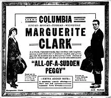 All of a Sudden Peggy is a lost[1] 1920 American silent comedy romance film directed by Walter Edwards and starring Marguerite Clark and Jack Mulhall.[2][3] It was produced by Famous Players–Lasky and distributed by Paramount Pictures. It is based on a 1907 Broadway play All-of-a-Sudden-Peggy which starred Henrietta Crosman.[4] It is Clark's third to last film. Director Edwards died in Hawaii that same year of 1920.
