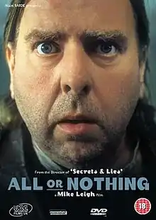 All or Nothing is a 2002 British drama film written and directed by Mike Leigh and starring Timothy Spall and Lesley Manville. Like much of Leigh's work, the film is set in present-day London, and depicts three working-class families and their everyday lives.