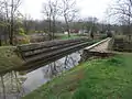 Allegheny Aqueduct, also known as Gibraltar Aqueduct, is a historic stone aqueduct located at Robeson Township in Berks County, Pennsylvania. It was built in 1824 and is about 260-foot-long (79 m) and 70-foot-wide (21 m). It was built as part of the Schuylkill Navigation Company canal system to carry canal boats across the Allegheny Creek. It is supported by a stone arch bridge structure with five spans. The aqueduct was in operation until 1928 and drained in 1967.[2]