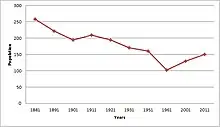 As the graph shows, in 1881 the Parish of Allerton Mauleverer with Hopperton had a population of over 250. But since then, the number of residents have gradually declined constantly until 1911. This as shown has fluctuated over time with its most significant decrease in the 1950s. There are reasons for this decline in population in the mid 19th century. One reasons is due to the growth of industrial districts in Lancashire and the North-East in the mid 19th century, where cotton textiles were produced.[14] This caused the majority of small parishes in North Yorkshire to see a decline in residents because citizens moved to the industrial areas to look for a better life. The population also reflects the major decline in residents, from 160 in 1951 to 100 in 1961, due to the change in parish boundaries during the 1950s.