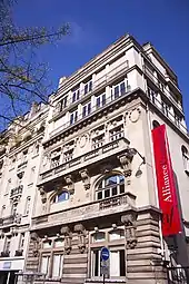 • The United Kingdom has eleven Alliances françaises organizations. The first Alliance française organization in the UK was located in London, which traces its roots back to 1884.[68] Other locations in the British Isles include Bristol-Bath, Cambridge, Exeter, Glasgow, Jersey, Manchester,[69] Milton Keynes, Newcastle-upon-tyne, Oxford and York. During WWII, the London location served as the international headquarters of Alliance française when the Paris location was closed.[70]