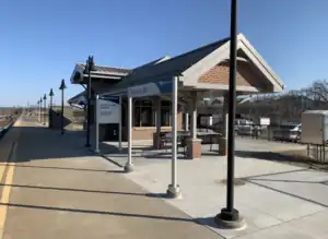 Amtrak spent $1.5 million to improve the station in 2011. It built a new shelter and installed a 550-foot (170 m) long concrete platform, signage and light poles. Developed by d+A Design+Architecture, LLC of Yardley, Pennsylvania, the shelter is composed primarily of rich red brick and has an enclosed, one-story waiting room with large windows. On the facades facing the street and the tracks, the waiting room is marked by stylized projecting bays faced with coursed ashlar stonework that adds texture to the overall elevation. The design is similar to the Okeechobee station (Florida), Connellsville station (Pennsylvania), and Winnemucca station (Nevada).[2]