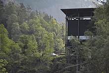 In 2001, Peter Zumthor was commissioned by the Norwegian road administration to design a rest area, museum and cafe. After a long period with planning and design changes, the construction started in 2008. It took 8 years before the project was finished, but in September 2016 the official opening was held. The museum is open for visitors in the summer time from June-August, and for groups ordering in advance the rest of the year. Three buildings are finished, and only the old path leading to the mines are yet to open. During a flood in 2014 parts of the path and a bridge were washed away, and work is now under way to repair the damage.