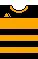 Alloa's home colours have been black hoops with either orange or gold stripes for the majority of its existence. The club's first strip featured black and orange hoops in 1882 and rarely changed up until 1947 when gold was more commonly used with the black.[11] Occasionally the club has adopted an all-gold or all-orange strip to replace the hoops and only once have these colours not been used; in 1897–98 the home strip was blue and white vertical stripes for a solitary season which was reverted to the traditional style the following year.[12]