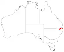 Shrubby she-oak is found among clefts in granite on the slopes of mountains and near creeks between Wyberba in south-eastern Queensland, and Boonoo Boonoo National Park in north eastern New South Wales.[3]
