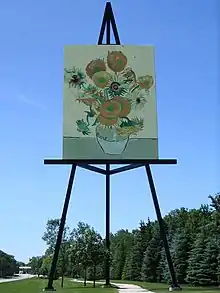 The community is home to the largest replica of a famous painting by Vincent van Gogh. It was named 'The largest painting on an easel by The Guinness Book of World Records in 1998. It was the first of three works in the Big Easel Project by local artist Cameron Cross, based on the painting Sunflowers. The base (easel) stands at 76'6" and the canvas was made by laminating together 24 sheets of 3/4" plywood and splattering it with 17 gallons of paint to create the picture. Altona is also home to the Gallery in the Park, a heritage home turned fine art gallery and outdoor sculpture garden.
