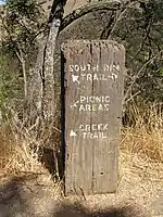 Alum Rock Park was originally known simply as "the reservation"; it received its current name around the turn of the 20th century when thenardite-containing rocks near its entrance were mistaken for alum.[2] Another black rock with an estimated weight of two thousand tons near the mouth of Penitencia Creek canyon was supposed to be one of the largest meteorites in the world.[3]