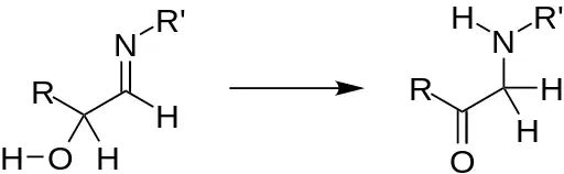 The rearrangement is usually preceded by formation of a α-hydroxyimine by condensation of an amine with an aldose sugar. The rearrangement itself entails intramolecular redox reaction, converting this α-hydroxyimine to an α-ketoamine: