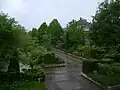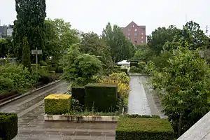 The garden abounds with different varieties of plants and fragrant flowers whose colours and natural shapes creates a contrast to the geometrical layout of the park.[2] Japanese cherry trees, blooming in April, plays a particularly distinctive role among the parks vegetation.