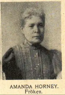 Amanda Horney (1857–1953), was a Swedish politician (Social Democrat).[1] She belonged to the pioneers of the labour movement, the Social Democratic movement, as well as the women's rights movement in Sweden.