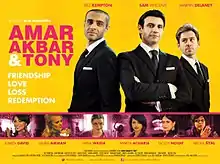 Amar Akbar & Tony is a 2015 British comedy-drama film written and directed by Atul Malhotra and starring Rez Kempton, Sam Vincenti and Martin Delaney in the lead roles.[1][2] Amar Akbar & Tony is an independent British feature film.[3] The title is a play on the 1977 Indian film Amar Akbar Anthony.[4]