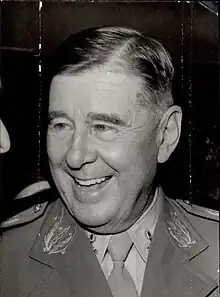 After the war, Kruel served as a military attaché in London until his promotion to colonel in 1947.[2] The position of attaché was a prestigious one and offered a more cosmopolitan life, isolated from barracks and bureaucracy. In diplomacy, Kruel was also Brazil's military advisor at the United Nations in 1960.[17] In 1958 he was awarded the Grand Cross of the Military Order of Aviz of Portugal.[18]