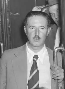 The generals' meeting began at 20:00, with Lindolfo and Zerbini absent.[81] The former would only return from vacation three days later, upsetting Kruel,[83] while the latter avoided the meeting and went to his headquarters in Caçapava to prevent the participation of the regiments from the Paraíba Valley in the coup.[84] At 21:00, Artur da Costa e Silva got in touch with Kruel, who said he was willing to join the coup, but faced the reluctance of generals Morais and Mendes. Costa e Silva would then have convinced both.[lower-alpha 9] Kruel only wanted to participate in the coup after verifying the obedience of the troops and the governors of São Paulo and Minas Gerais having issued their manifestos.[85] If he did not comply, some of his subordinates planned to arrest him and hand over command to colonel Carlos Alberto Cabral Ribeiro, of the 4th Infantry Regiment.[86][87]